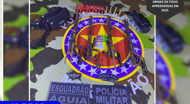 Em operação de combate a caça ilegal e crimes ambientais realizada neste sábado, 26 de abril, na região da Serra do Penitente, municipio de Tasso Fragoso/MA, o 4º Batalhão de Polícia Militar do Maranhão (4º BPM/MA) com sede em Balsas, através da guarnição da Patrulha Rural Serra do Penitente, realizou a apreensão de 4 armas de fogo.