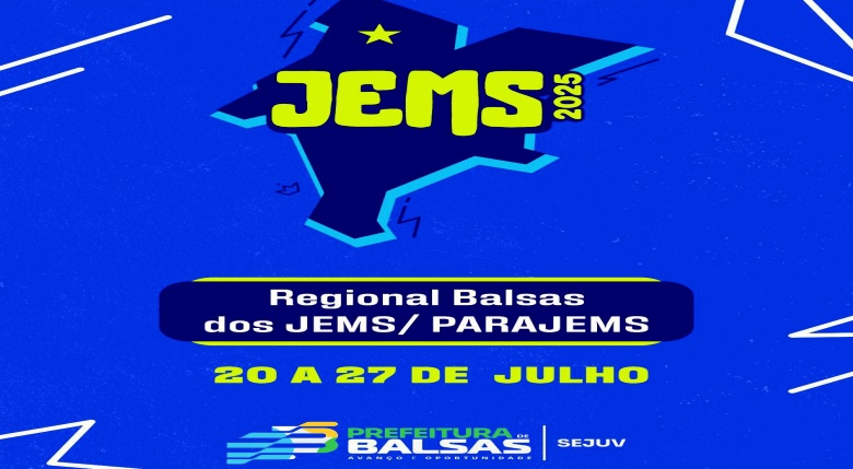 A Prefeitura de Balsas, por meio da Secretaria Municipal de Juventude (SEJUV), realiza pela primeira vez na história a etapa regional dos Jogos Escolares Maranhenses – JEM’S e PARAJEM’S 2025. A abertura oficial acontecerá às 18h do dia 21 de julho (segunda-feira) no Ginásio Rei Pelé.